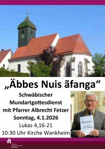 10:30 Uhr Schwäbischer Mundart-Gottesdienst in der Jakobuskirche Wankheim