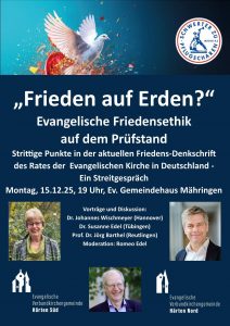 des Rates der Evangelischen Kirche in Deutschland – Ein Streitgespräch. Montag, 15.12.25, 19 Uhr, Ev. Gemeindehaus Mähringen
