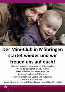 09.00 Uhr Mini-Club im Kinderkirchraum des Ev. Gemeindehauses
