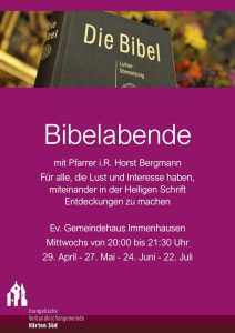 19.15 Uhr Abendgebet im Ev. Gemeindehaus Immenhausen