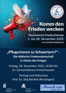 19.00 Uhr Vortrag „Pflugscharen zu Schwertern“ von Dr. Barthel im Ev. Gemeindehaus
