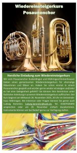 20.00 Uhr Wiedereinsteigerkurs Posaunenchor im UG des Ev. Gemeindehauses